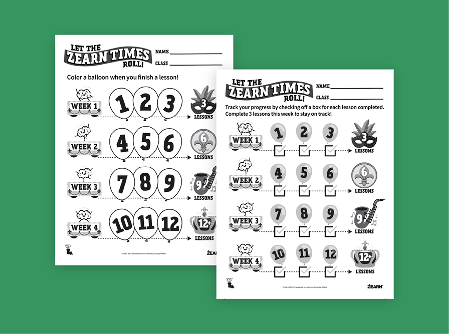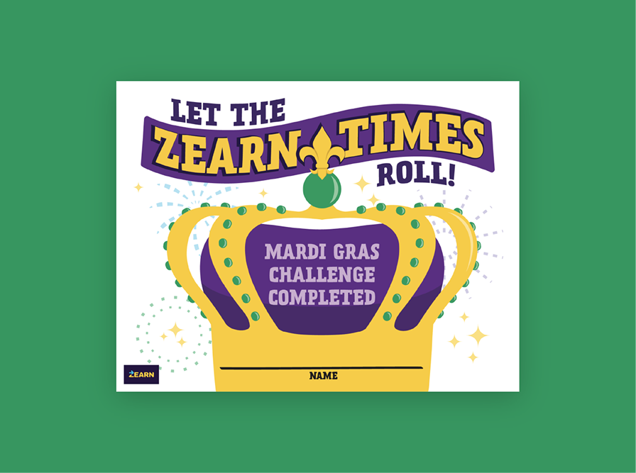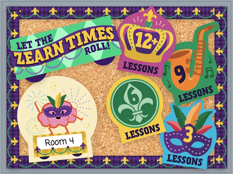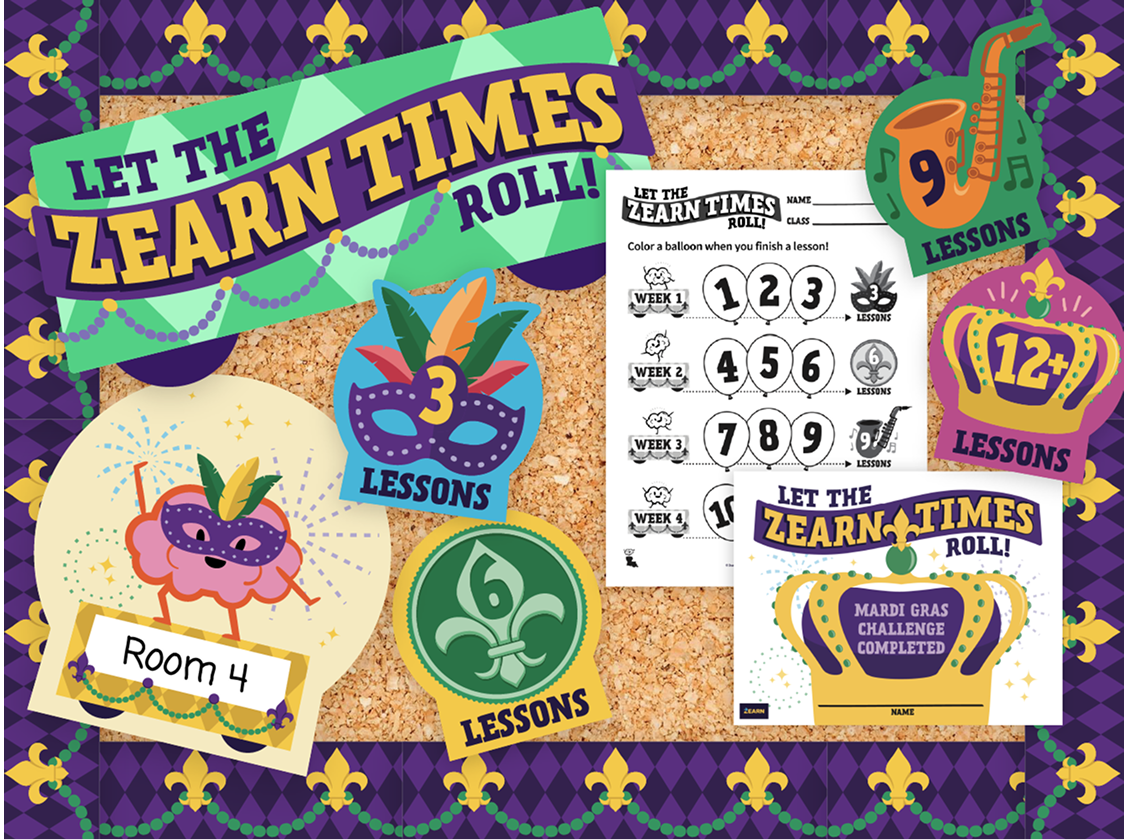 Let the Zearn times roll! Every Zearn lesson your students complete helps your school progress in the Mardi Gras challenge.